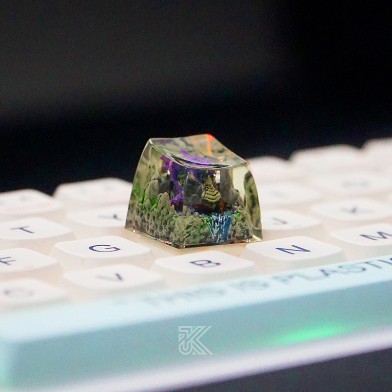The LOL Baron Keycap from Junkeycap is a handmade resin artisan keycap inspired by Baron Nashor — the iconic monster from League of Legends. Crafted in SA R1 profile, it features a tiny 3D scene of a purple Baron rising among rocky terrain and green moss, encased in a clear resin dome that reflects light beautifully. Perfect for collectors and gamers who want to bring a piece of Summoner’s Rift to their keyboard.
