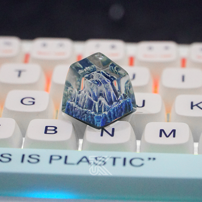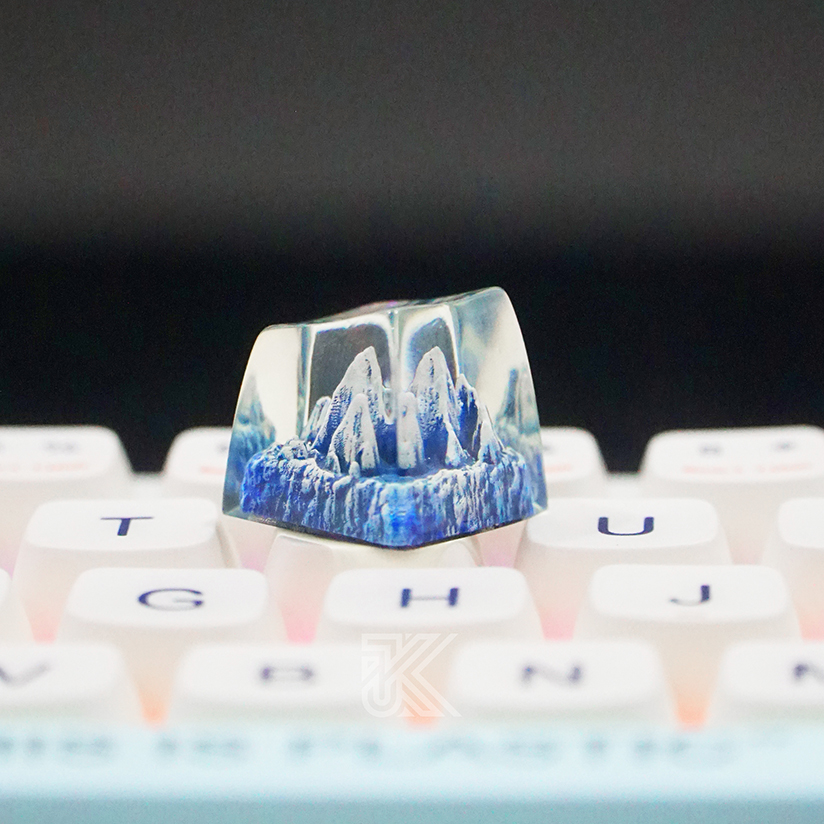 The Mountain Keycap — Everest Ice from Junkeycap is a handcrafted resin keycap that captures a miniature snow-capped Everest inside a clear, domed cap. Made in Vietnam with premium resin and fine layering techniques, this artisan keycap features crisp blue glacier textures and a translucent upper dome that beautifully diffuses RGB lighting. Compatible with MX-style mechanical switches and sold in the U.S. via Junkeycap’s official store.